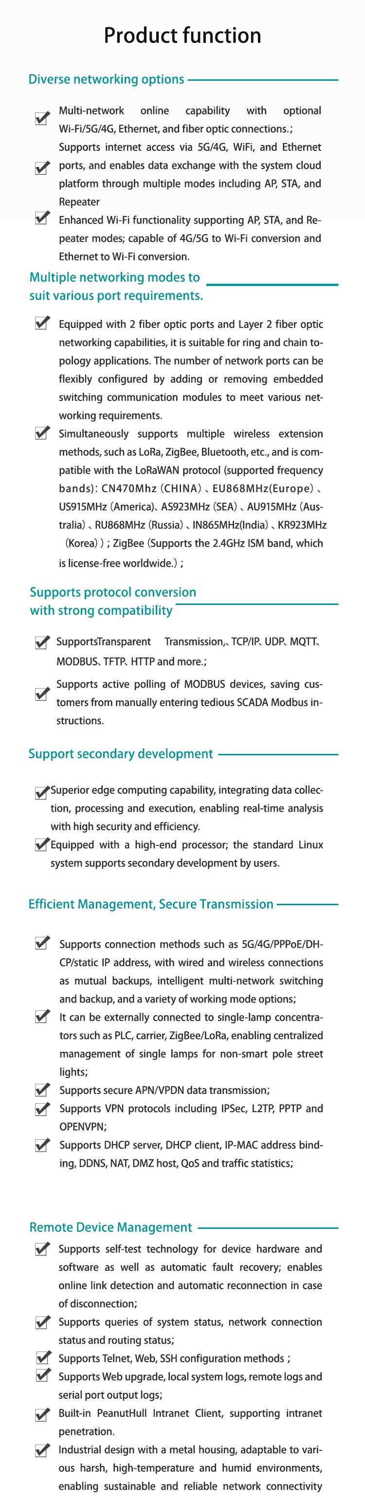 The MTW46-7-1A streetlight dedicated gateway is an industrial-grade wireless communication gateway specifically designed for smart streetlights, serving as the core device of smart lamp posts.