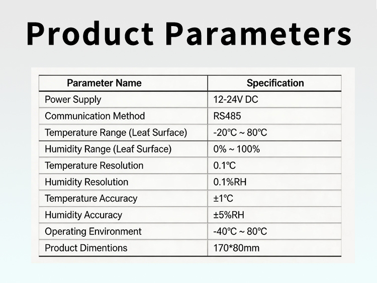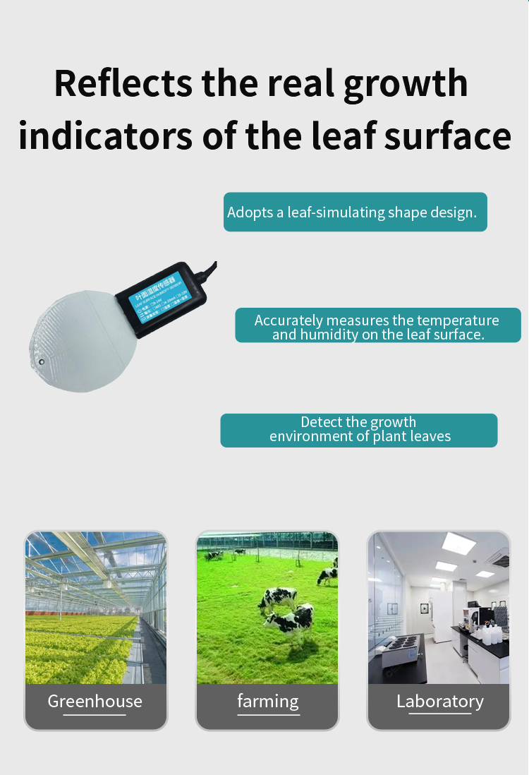 The leaf surface temperature and humidity sensor detects the growth environment of plant leaves by accurately measuring the temperature and humidity on the leaf surface.